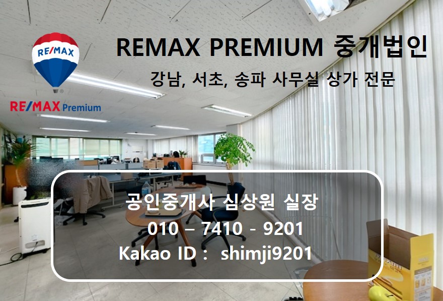 안녕하세요. 강남, 서초, 송파구 사무실/상가 임대 전문 리맥스 프리미엄 중개법인의 심상원 실장입니다. 저희 리맥스 프리미엄 중개법인은 허위 매물이 아닌 실제 계약 가능한 매물들로만 소개