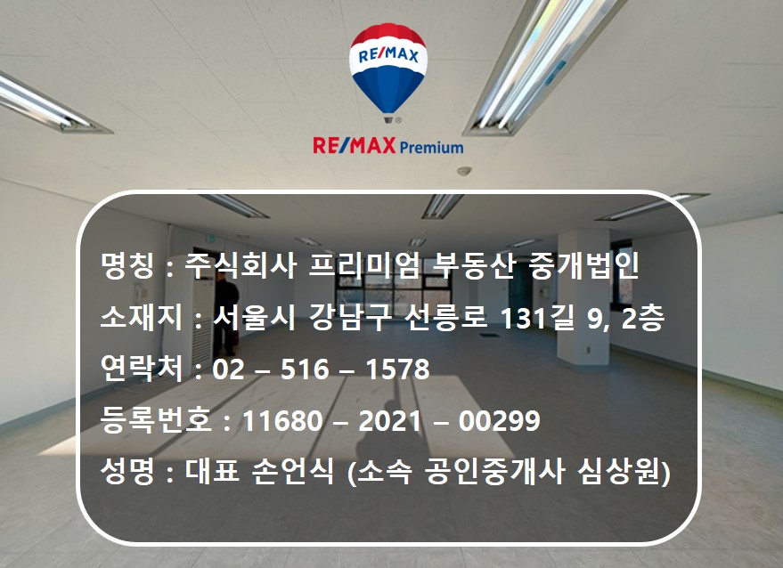 전 세계 글로벌 부동산 프랜차이즈 중개법인 REMAX PREMIUM 심상원 실장입니다. 저희 리맥스 프리미엄 중개법인은 실제 건물 답사한 내용과 사진으로만 매물 소개를 드리고 있습니다. 오늘 소개해