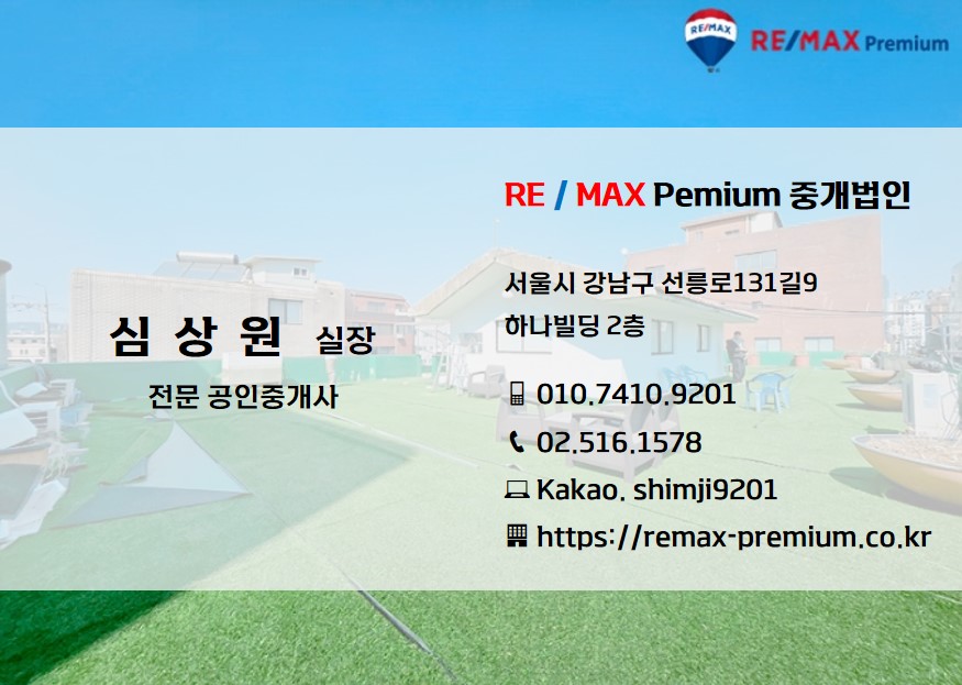 RE / MAX 프리미엄 심상원 실장입니다.
