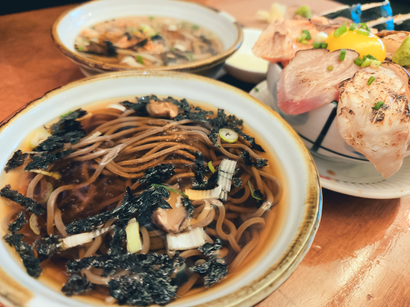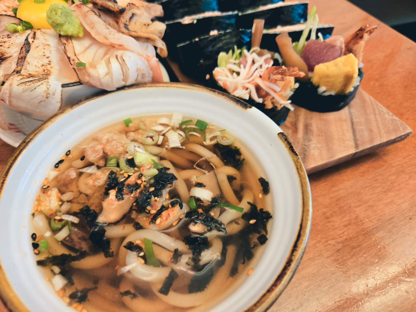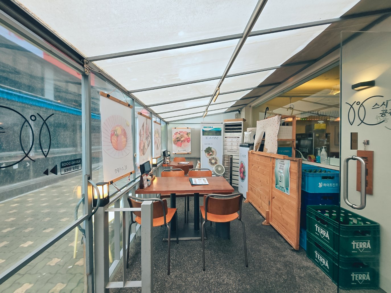 2가지 메인 메뉴에 사이드 우동, 모밀까지 점심 식사로 배불리 먹고 나온 스시공간입니다.
