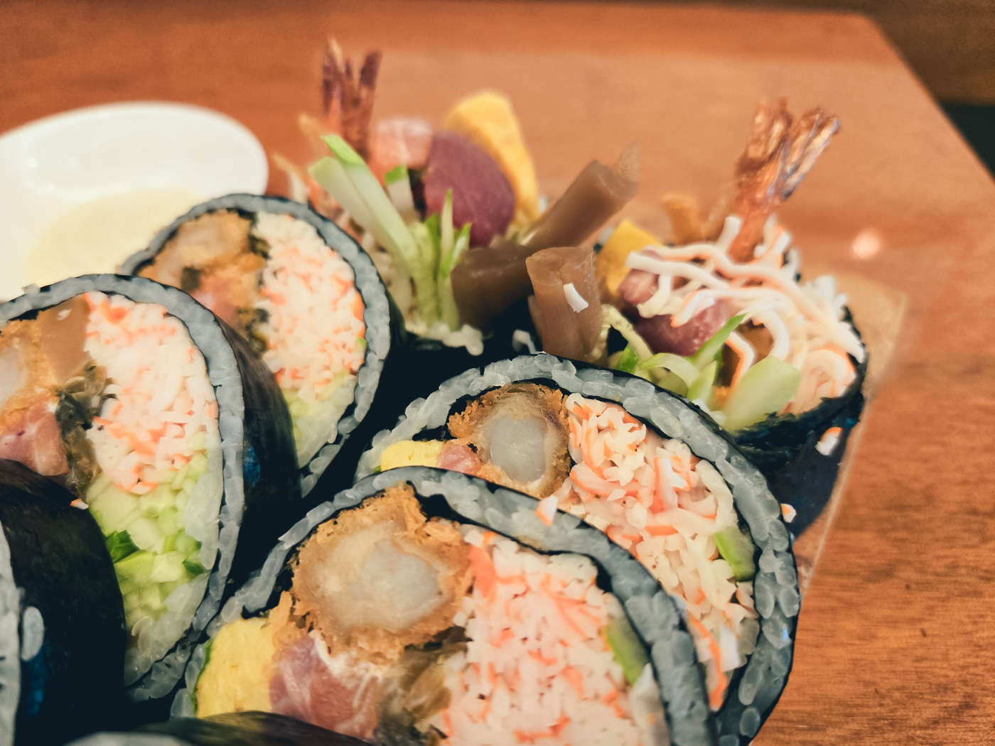 ✔️ 초밥 안에 연어, 마구로, 시소, 튀김등이 들어간 공간 후토마끼