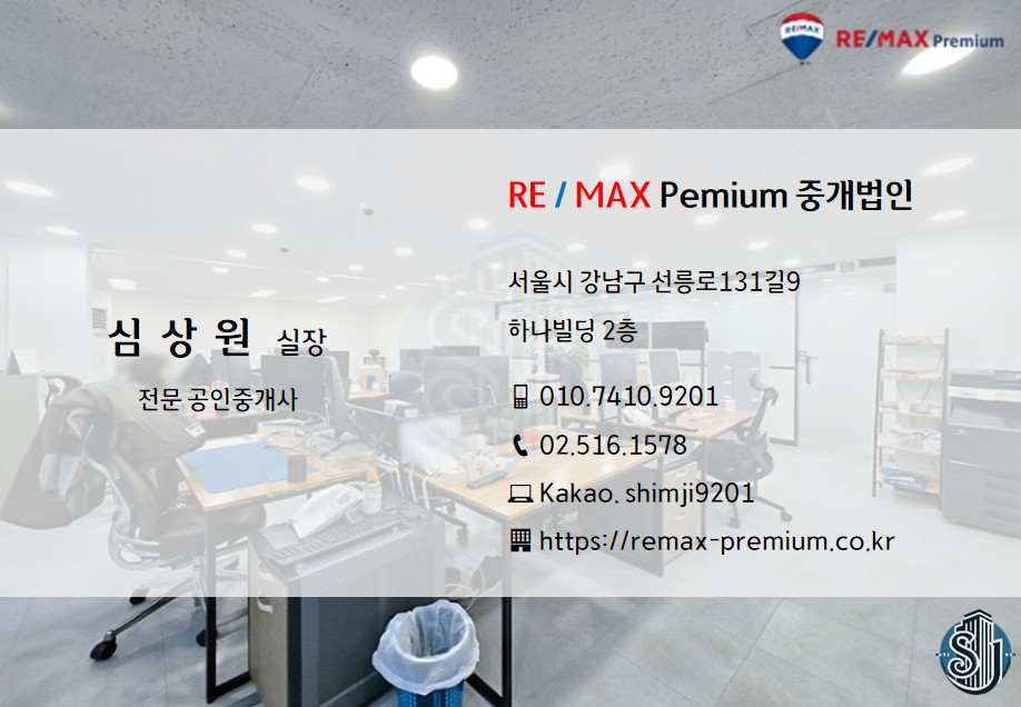 RE / MAX 프리미엄 공인중개사 심상원 실장입니다.