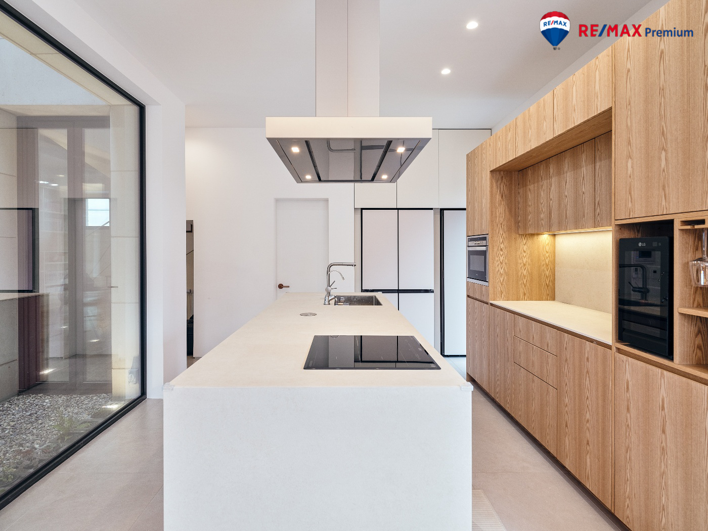 " ㄷ " 자 형태의 내부 공간으로 한가운데 중정이 자리하고 있으며, 거실과 주방 인테리어가 되어 있습니다.