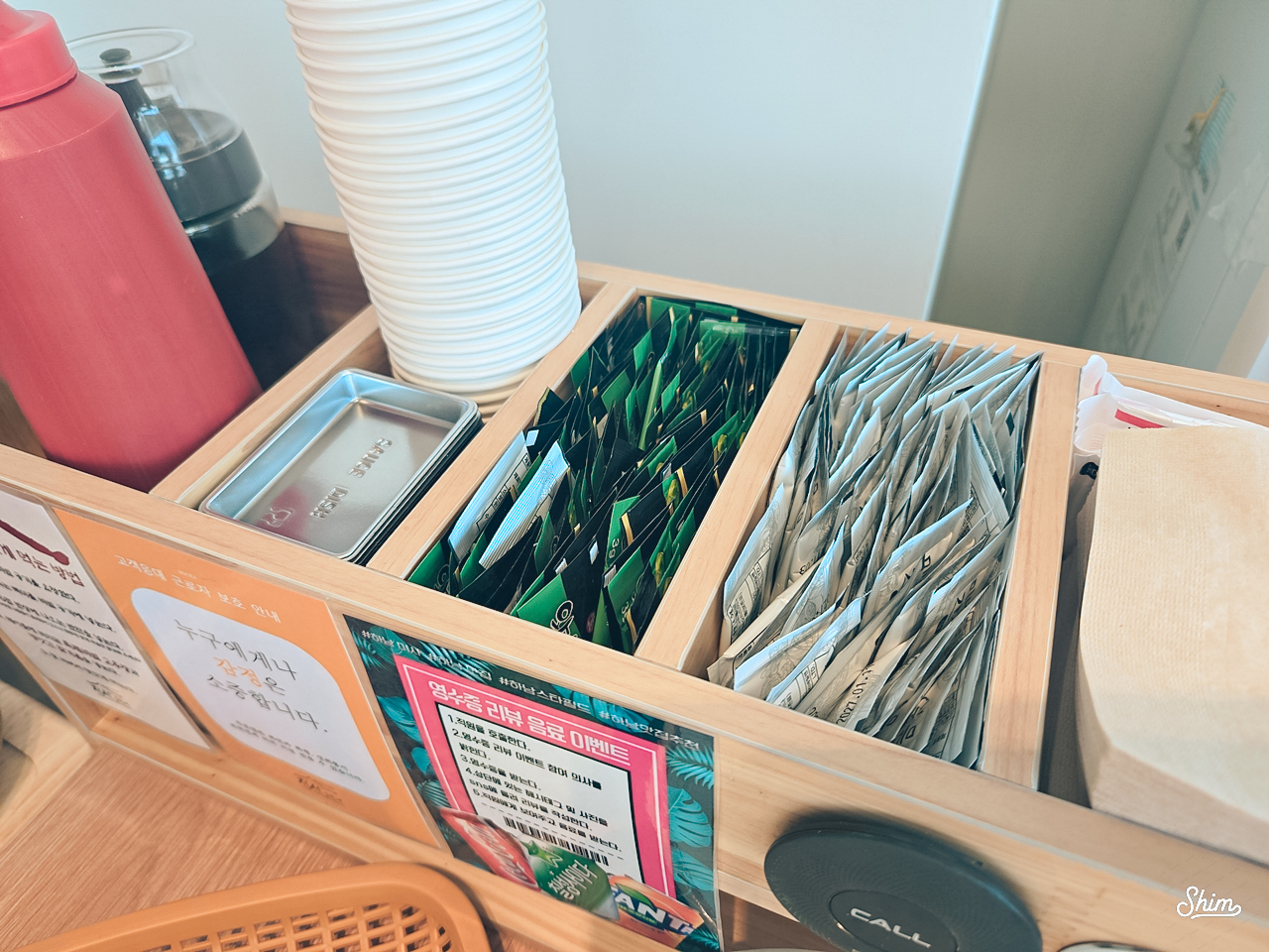 각 테이블에 수저와 함께 미리 비치되어 있습니다.